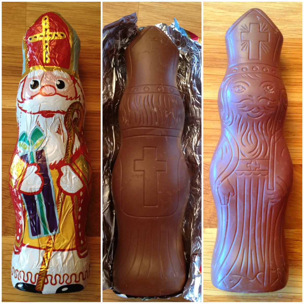 Oordeel: Folie zit goed om de sint heen, bovendien lijkt het folie steviger dan gemiddeld. Sluit weer aan bij de premium beleving waar ook het relatief hoge gewicht aan bijdraagt. Bij het openmaken valt direct op dat deze Sint rondom is vormgegeven, zelfs op de rug is de tekening duidelijk zichtbaar. En duidelijk geen Kerstman of Paashaas. Nice. Voorkant is ook overduidelijk een Sinterklaas. Het is alsof deze Sinterklaas alle ellende rond die Zwarte Piet moet doen vergeten – en dat lukt heel aardig. Complimenten voor de esthetische aspecten van deze chocolade Sint-merchandise. Wanneer je de figuur aanbreekt vallen twee zaken direct op: de chocolade is dik en de chocolade is viesbah. Om zeker te zijn dat ik dat niet verzon heb ik ook anderen laten proeven maar het oordeel bleef eenduidig meh. “Een soort koffiechocolaatje, maar dan slecht”. Dat idee. Droog romig maar flets-ig. Ook was de chocolade wat brokkelig; gezien de smaak durf ik niet te gokken of dat door uitdroging komt of door matige kwaliteit vanaf het begin. Jammerdebammer, betere smaak had hier een voltreffer van kunnen maken.